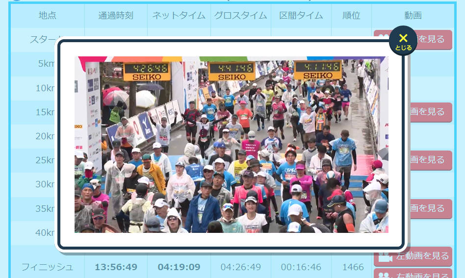動画配信サービス 大規模大会の動画配信サービスです。 各地点から送信された動画をサーバーサイドで記録しフロントサイドからのリクエストでランナーごとの動画を生成・配信します。 大会当日のAPIアクセス総数は数百万回におよびます。